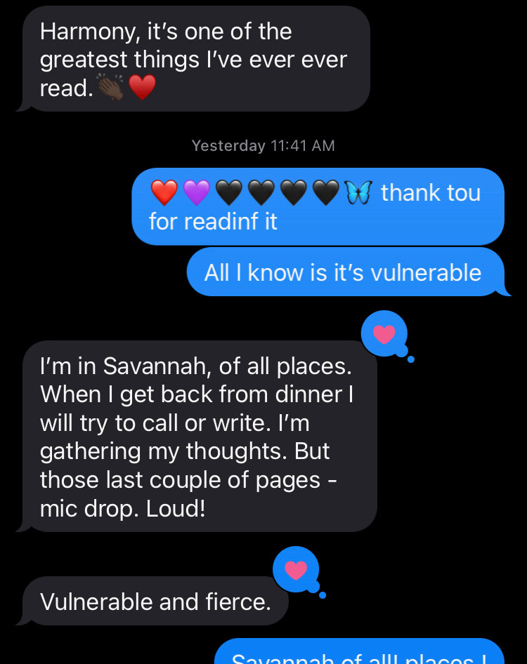 Fred called me from Savannah, Georgia last night, he had just spoken at a museum, and wanted to discuss why he loved that piece of writing I’d sent him, about my childhood. Because I claim ownership of it, horrors and all, flaws and all, eros and all, loss and all of its terror and lure. He told me about an exchange with his own father, wherein they formed and breached understanding. We discussed white people who want to be black, feeling alienated by their own, they turn away and see us in the distance and run up that hill. They bring Kate Bush, they introduce her to Stevie Wonder. Fred says there’s enough blackness in the world for them. Trust white people who want to be black more than white people who want to be white. I agree, then waver thinking of my mother’s desire, flexed sometimes as entitlement to black suffering or fetishization of it or vacillation, one minute exerting white privilege, the next appropriating back suffering. What if the white people who we think want to be black are just the best at wanting to be white, so good at it in fact that they know that in proximity to blackness they can retrieve their spurned whiteness. I think of James Baldwin’s writing on Sydney Poitier in Defiant Ones. He’s chained to a white man and manages to get away but then returns to save him, sabotaging his own escape. Is this what the white people who get close to blackness believe is at its heart, a desire to serve them at our own expense, to impress them with generosity of spirit and make us either sub or super human.