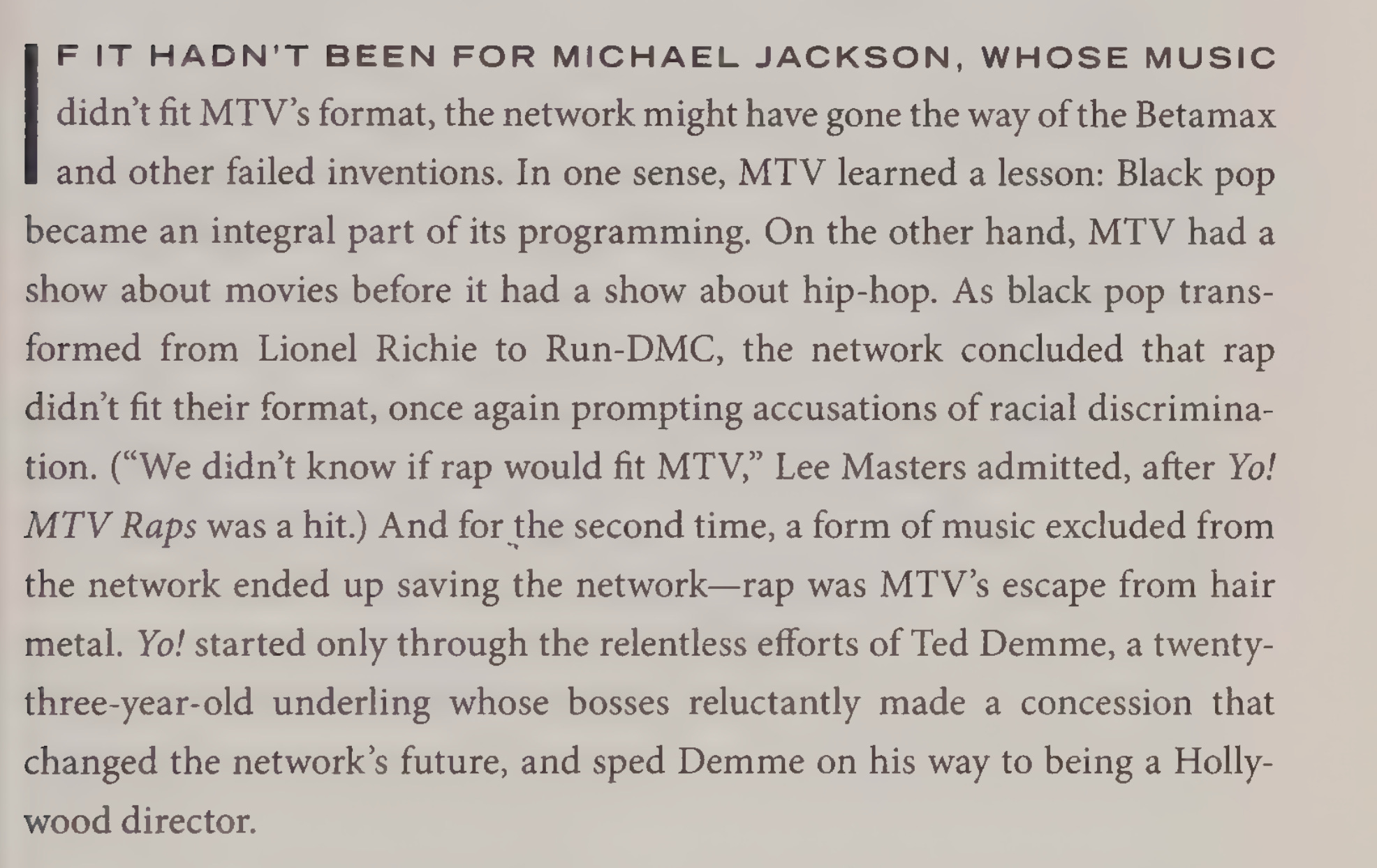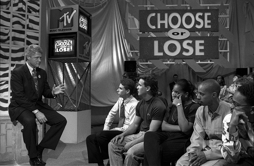 Angst and rage were their currency, they created messaging about not selling out but also the glamor spell of the proud sell-out, and pretended to embody both at the same time. They were the liberal disguised as rebel making way for the identity crisis of now with farcical errands like Rock-The-Vote, the early stages of performative environmentalism sponsored by private-jet owning elites, and prison abolition making way for the privatized prisons in which some rich and famous Gen X men now invest. They were willing errand boys for the Epstein-Industrial Complex, which is to say heroin chic supermodels were in style, sex scandals were in style, video vixens were treated as expendable and trafficked through the industry, Trump made celebrated cameos on black sitcoms and was friends with the hip hop community now pretending to disdain him, music videos that depicted life as a series of parties and revenge fantasies were in style, and what was being called alternative was all bound up with the hegemons to such an extent that the establishment needed the faux radicalism for texture and structure, sometimes just for a diversion while they expanded the goals of empire with endless wars we forgot about because there was so much fun hip hop and sad complaint rock to choose from we felt embattled at home.